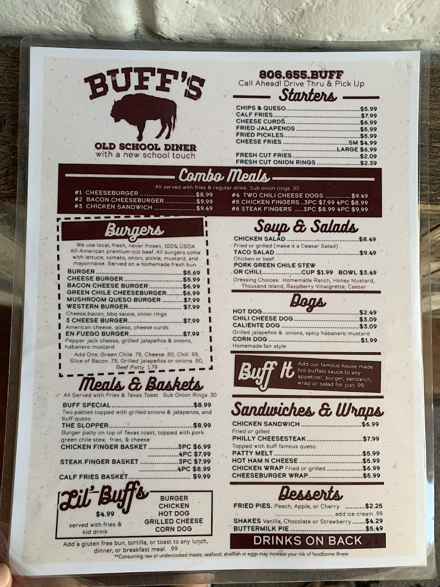 Buff's Menu